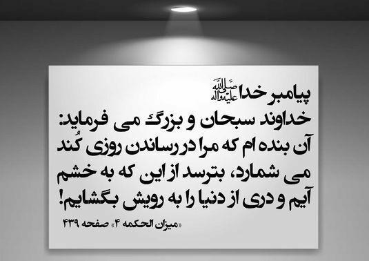 خداوند سبحان و بزرگ مى فرمايد : آن بنده ام كه مرا در رساندن روزى كُند مى شمارد، بترسد از اين كه به خشم آيم و درى از دنيا را به رويش بگشايم!