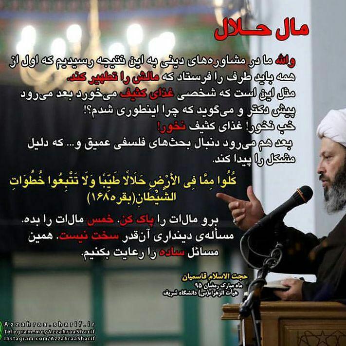 والله ما در مشاورههای دینی به این نتیجه رسیدیم که اول از همه باید طرف را فرستاد که مالش را تطهیر کند. مثل این است که شخصی غذای کثیف میخورد بعد میرود پیش دکتر و میگوید که چرا اینطوری شدم؟! خب نخور! غذای کثیف نخور!