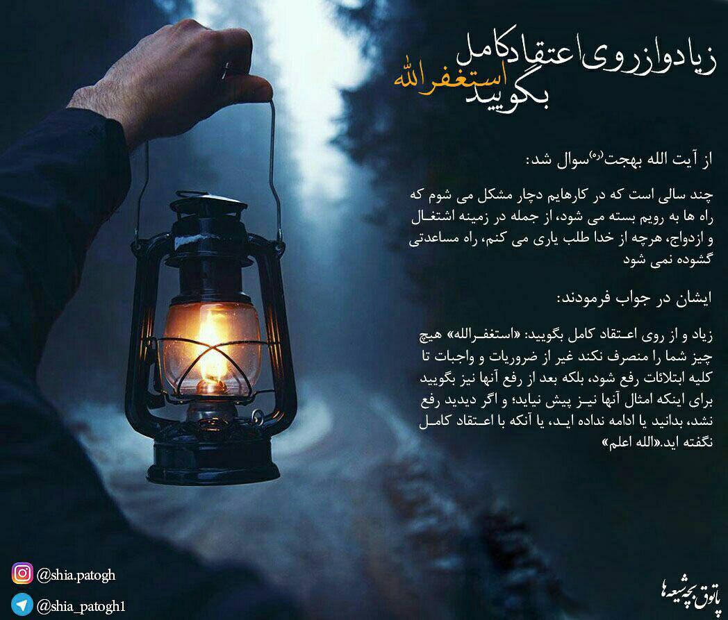 ☑️👈ج: بسمه تعالی- زیاد بگوئید «استغفر الله» و خسته نشوید، و خاطر جمع باشید این علاج است. « داؤکم الذنوب و دواؤکم الاستغفار ».